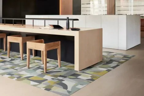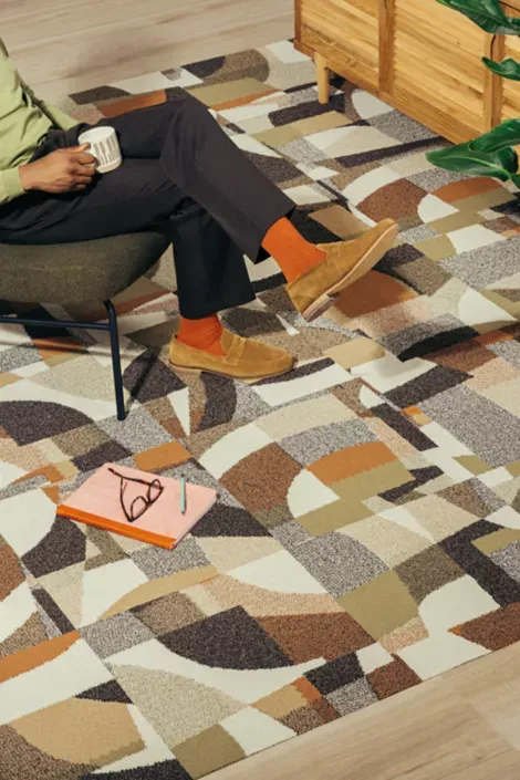 Circa Then Office Carpet Tiles fuse mid-century geometric design with modern office functionality. Its structured loop pile ensures durability and texture for high-traffic commercial spaces. Made with recycled solution dyed nylon, these tiles deliver sustainable, long-lasting performance.