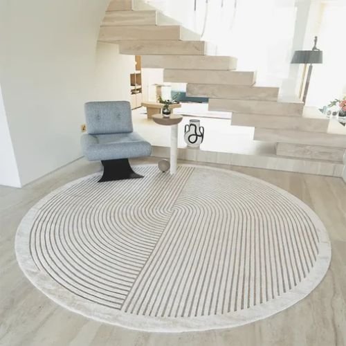 Curves and Straight Lines Patterned Carpet features a hypnotic optical pattern, bringing a touch of 60s-inspired style to your home.