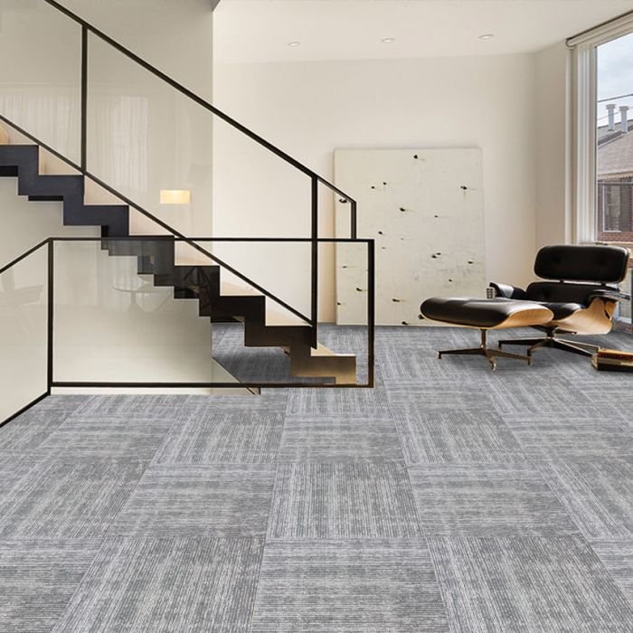 The 500x500mm tiles feature a 1/12” multi-level loop construction for a textured, dynamic look and come in four chic tonal styles. Made from water-resistant, easy-to-clean polypropylene with cushioned backing, they can be installed aligned or staggered in multiple directions for stylish, comfortable, and quiet flooring.