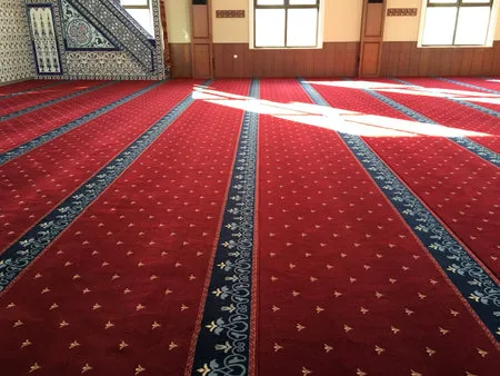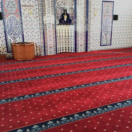 Add comfort and elegance to your mosque with the HATAY Red Border Mosque Masjid Carpet, featuring 14mm thickness and 880,000 points per square meter for a soft, supportive prayer surface. Crafted from 100% heat-set polypropylene with antibacterial and easy-to-clean properties, this durable Turkish carpet ensures hygiene, long-lasting performance, and a refined look for any mosque interior.