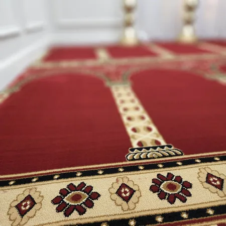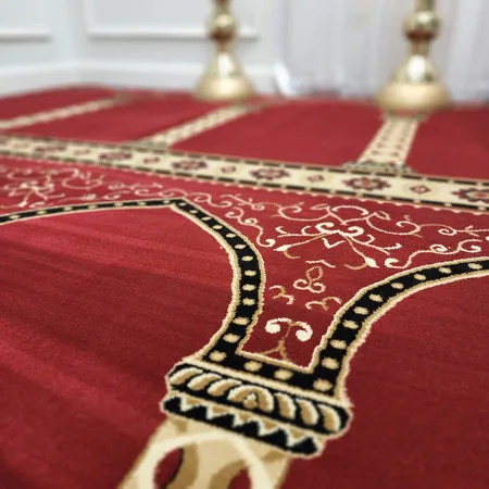 Bring comfort and elegance to your mosque with the HEJAZ Red Mosque Prayer Carpet, featuring 14mm thickness and 880,000 points per square meter for a soft and supportive prayer surface. These mosque carpets Dubai are made from 100% heat-set polypropylene with antibacterial and easy-to-clean properties, it ensures durability, hygiene, and a luxurious Turkish-crafted prayer experience.