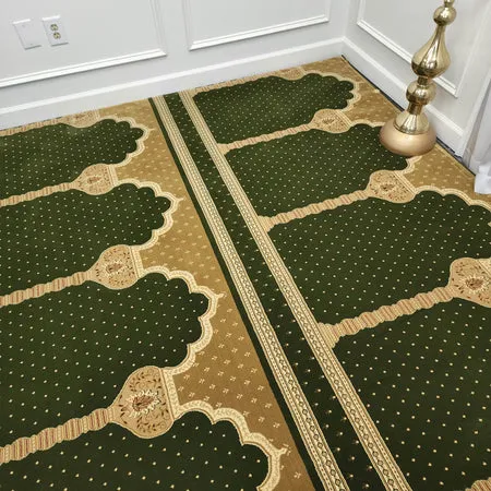 Bring serenity and elegance to your mosque with the MADINA Green Haven™ Arch Masjid Carpet, featuring 14mm thickness and 880,000 points per square meter for plush comfort and support. Made from 100% premium polypropylene with antibacterial and easy-to-clean properties, it ensures durability, hygiene, and a refined prayer experience for high-traffic areas.