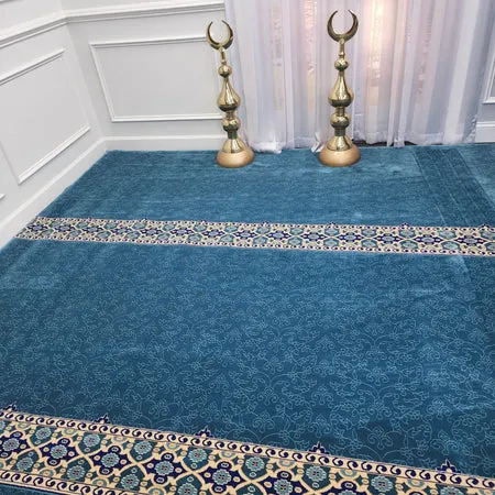 Enhance your mosque with the NOOR Divine Ease™ Sky Blue Mosque Carpet, featuring 14mm thickness and 880,000 points per square meter for superior softness and support. Made from 100% premium polypropylene with antibacterial and easy-to-clean properties, it ensures long-lasting comfort, hygiene, and elegance for high-traffic prayer areas.