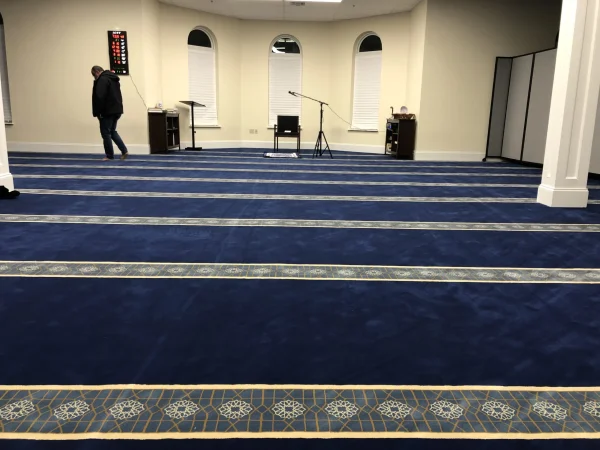 Bring a refined and grand look to your mosque with the Royal Blue Border Mosque Carpet, made from 100% polypropylene for long-lasting strength and softness. Its elegant royal blue shade with a floral dotted design enhances any prayer space, while the 10–12 mm thickness and antibacterial quality ensure comfort, hygiene, and durability for daily congregations.
