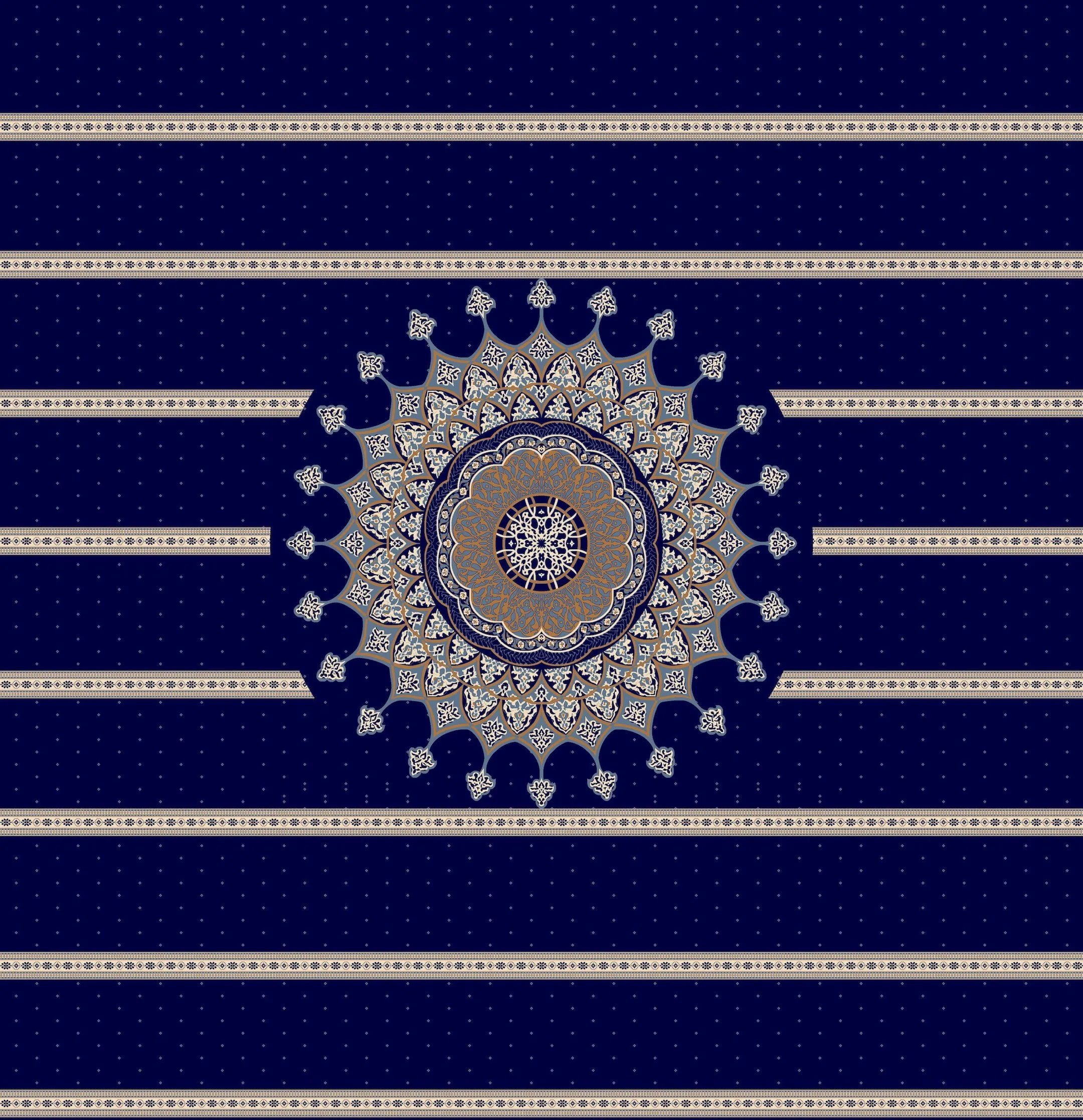 Elevate your mosque’s interior with the Royal Blue Masjid Carpet, crafted from 100% polypropylene for lasting softness, durability, and easy maintenance. Its rich royal blue color with an elegant medallion design brings a serene and stylish touch to any prayer hall. With 10–12 mm thickness and high density, this carpet provides long-lasting comfort and strength, making it perfect for daily prayers.