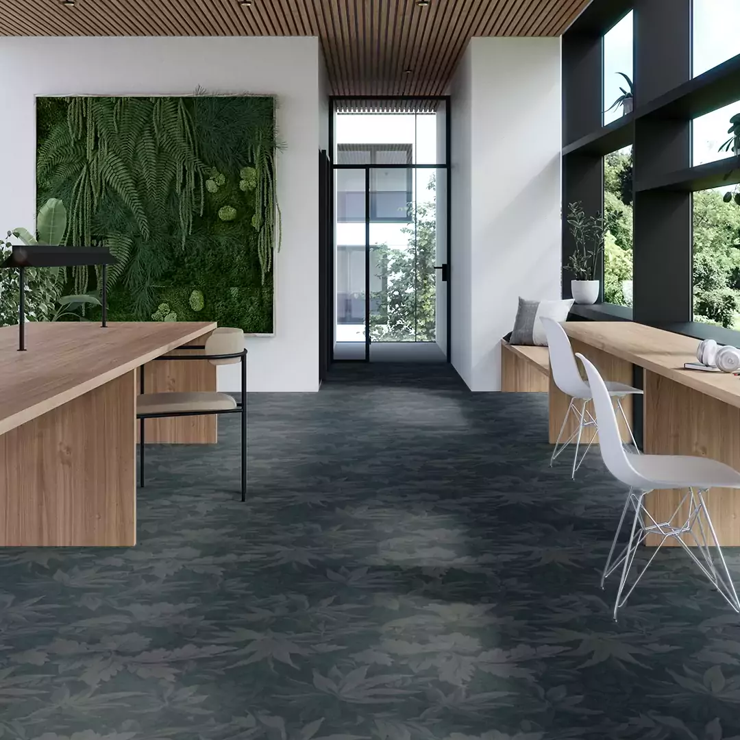 Bring the outdoors inside with the Highline Nature collection, inspired by forests, deserts, and oceans. These wall to wall carpets showcase wood, stone, flowers, sand, and water in lifelike or abstract designs, and can be recolored at no extra cost to perfectly match your interior vision.